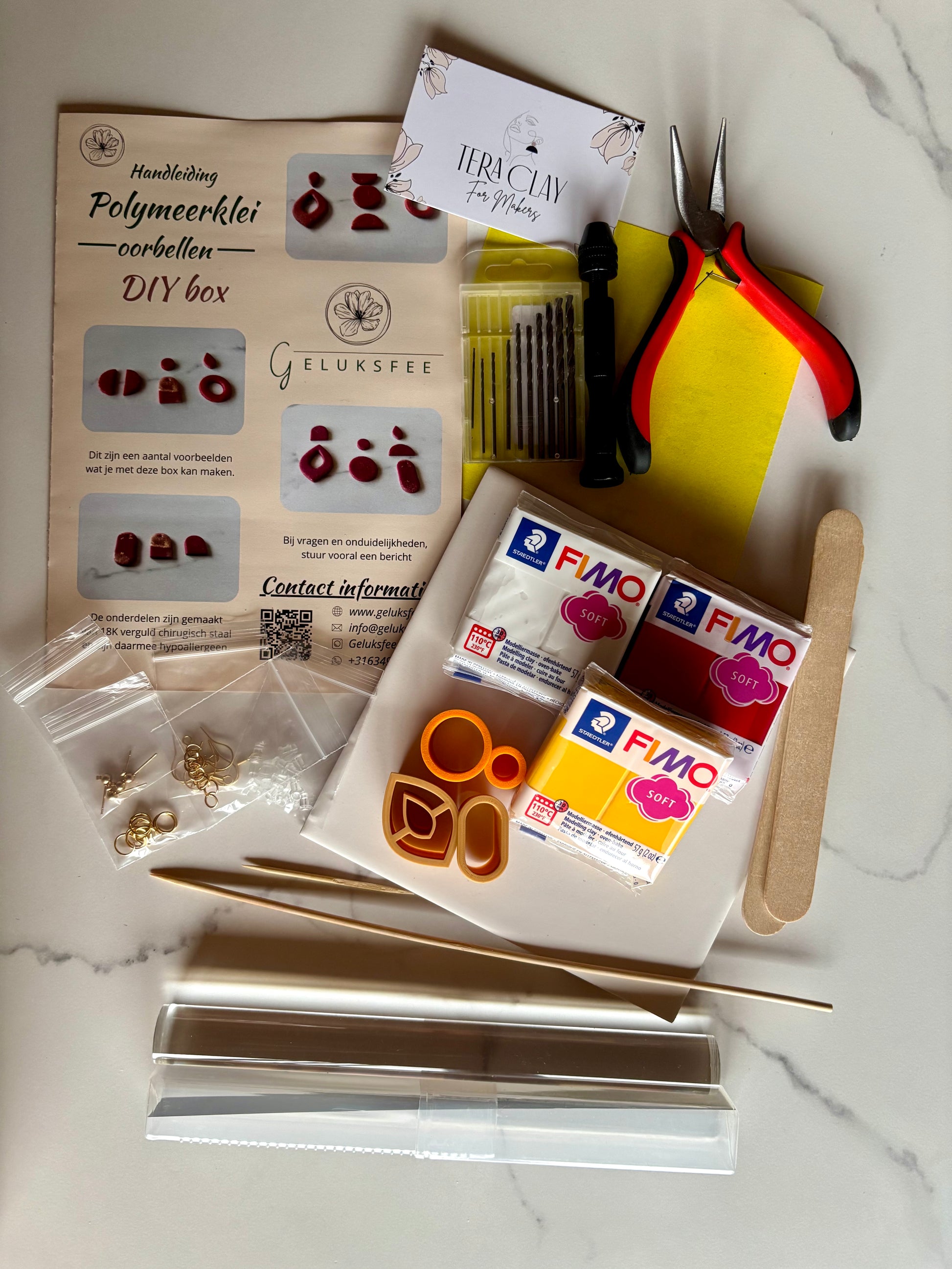 Mooie oorbellen van polymeerklei gemaakt tijdens Kreadoe met goede instructies van de 3 geluksfees.