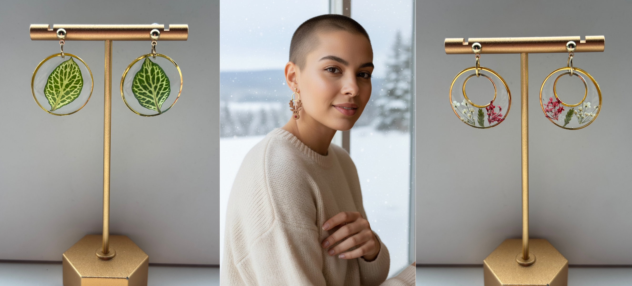 Anja maakt mooie oorbellen van onder andere door haar zelf gedroogde bloemen. Prachtig!