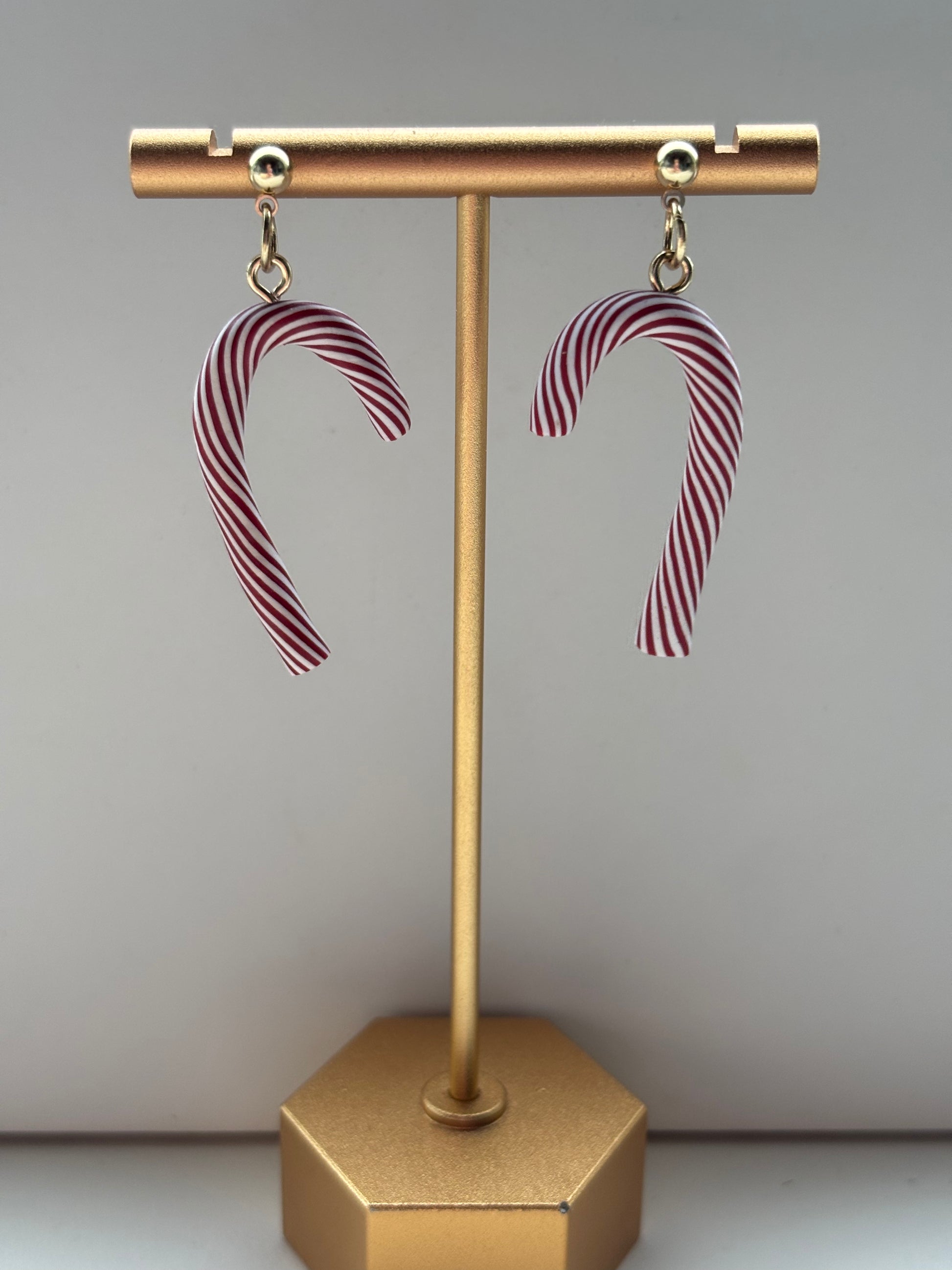 Oorbellen van polymeerklei in de vorm van een candy cane
