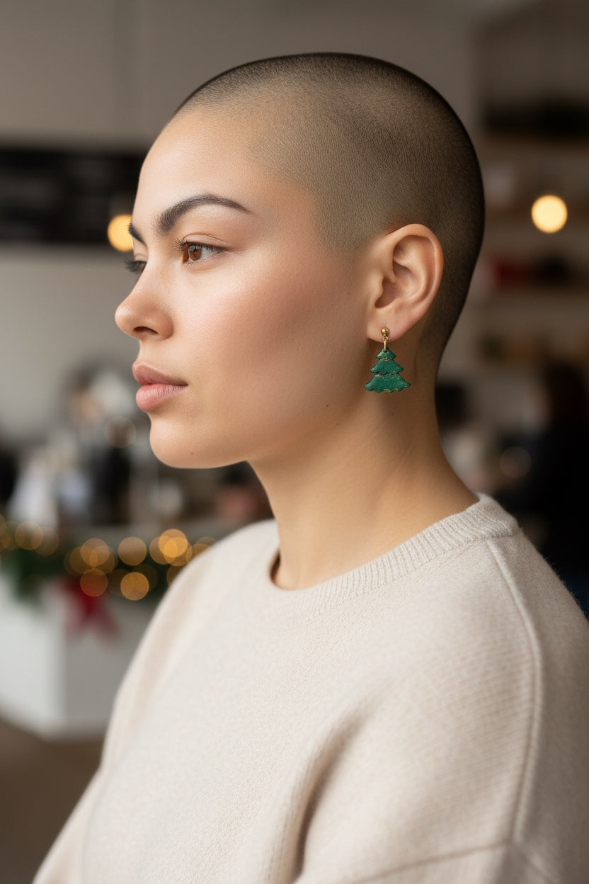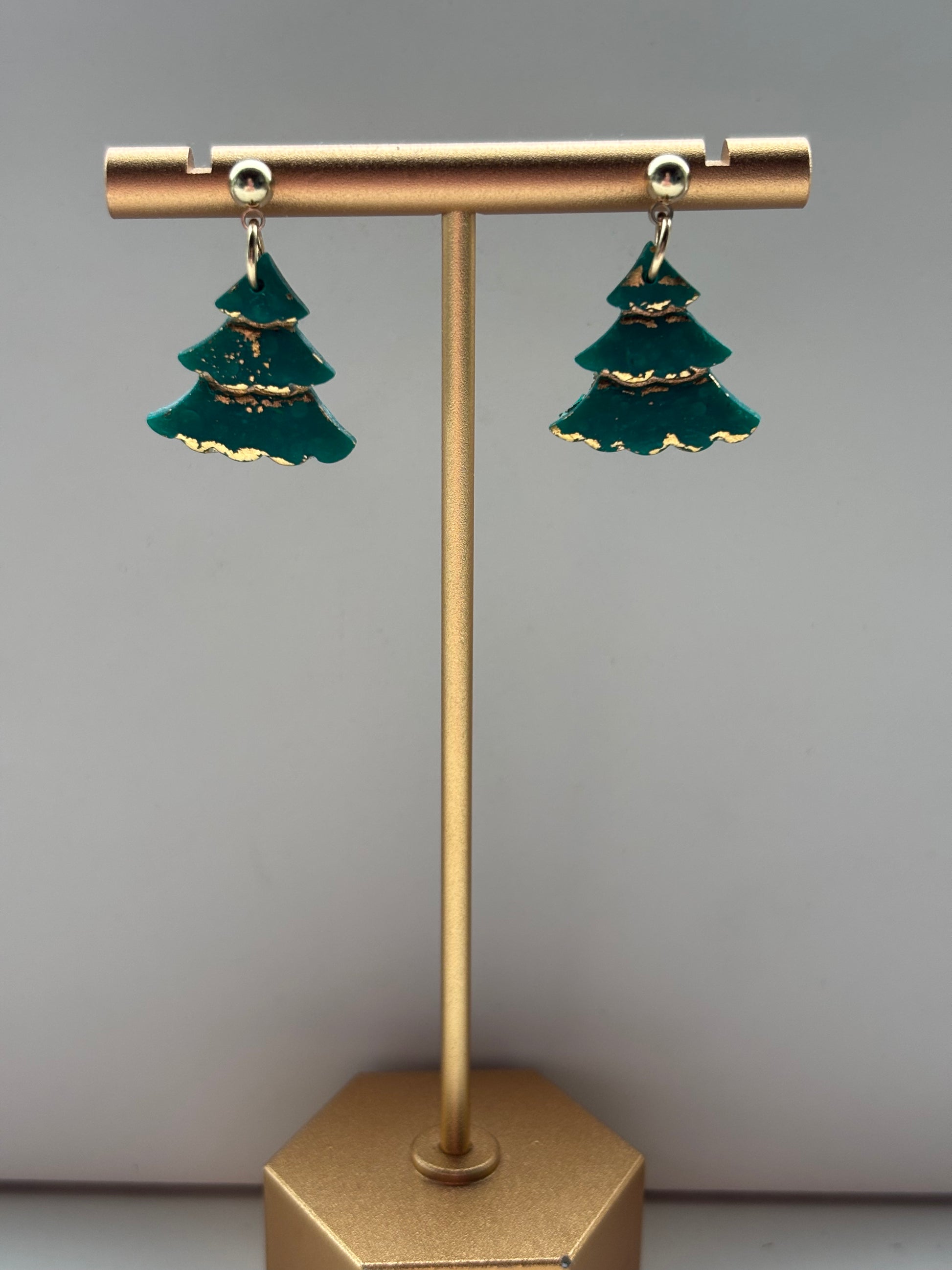Een sprankje wintermagie in sieradenvorm. Deze handgemaakte oorbellen van polymeerklei zijn vormgegeven als een stijlvolle kerstboom, waarbij subtiele groene tinten samenkomen met fijne accenten van bladgoud. Het glinsterende goud vangt het warme licht van decemberdagen en geeft dit sieraad een feestelijke, maar toch verfijnde uitstraling.