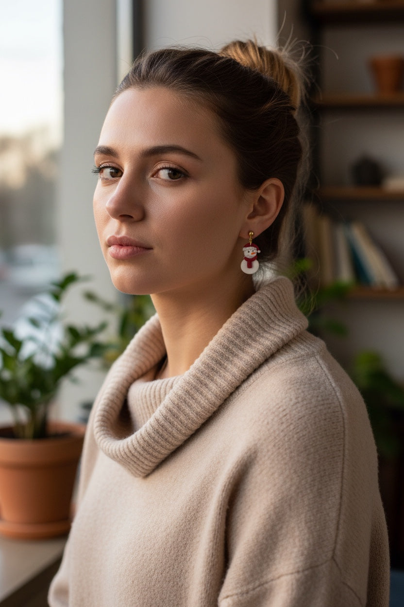 Een sprankje winterse vrolijkheid in oorbelvorm. Deze handgemaakte sneeuwpop-oorbellen van polymeerklei – Frosty the Showman – brengen de magie van december tot leven. De witte sneeuwpop, de rode kerstmuts en de zachte details geven dit ontwerp een warme, feestelijke uitstraling die meteen doet denken aan knusse winterdagen en twinkelende lichtjes.