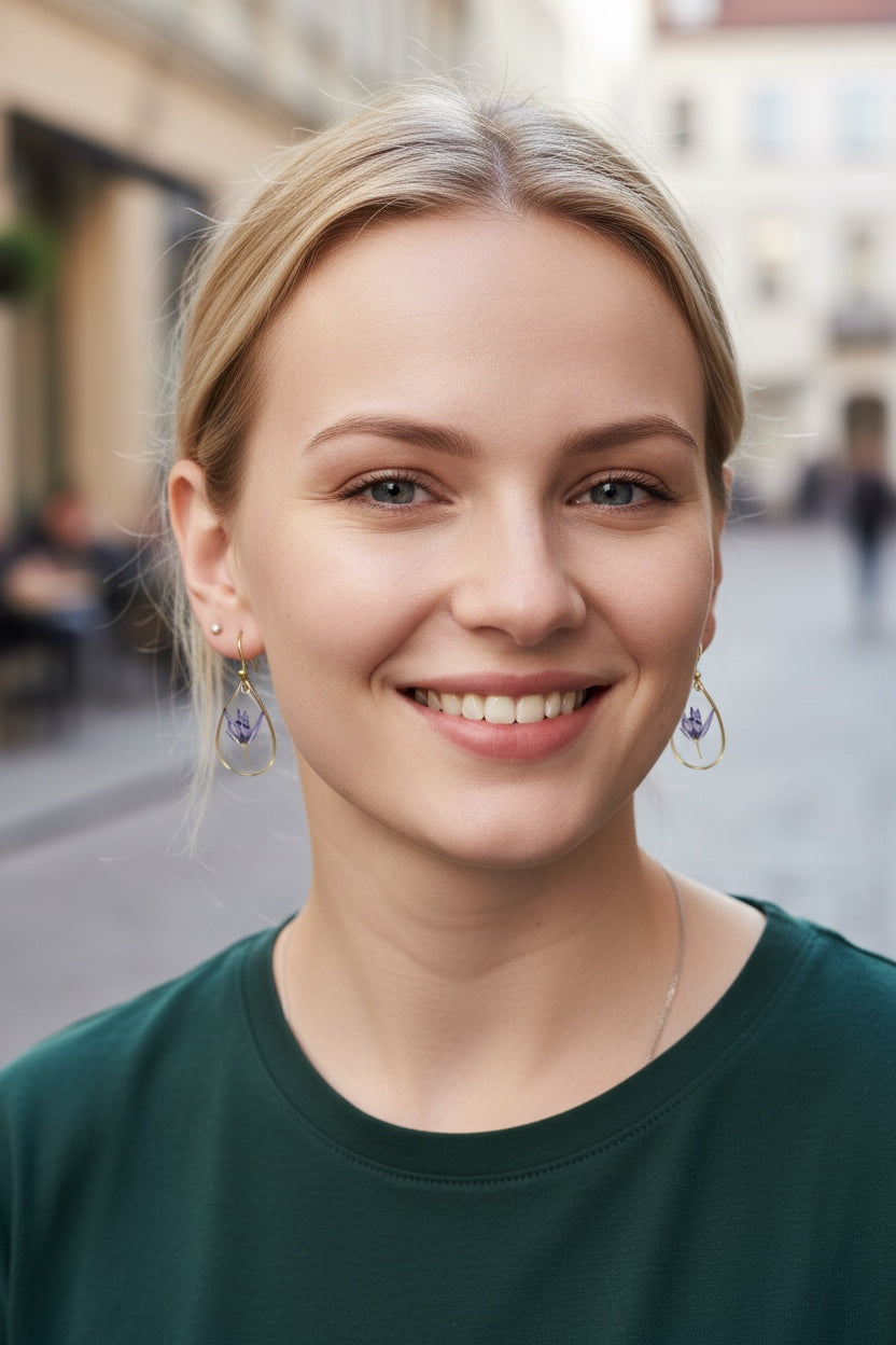 Handgemaakte oorbellen met echte sterhyacint bloemen