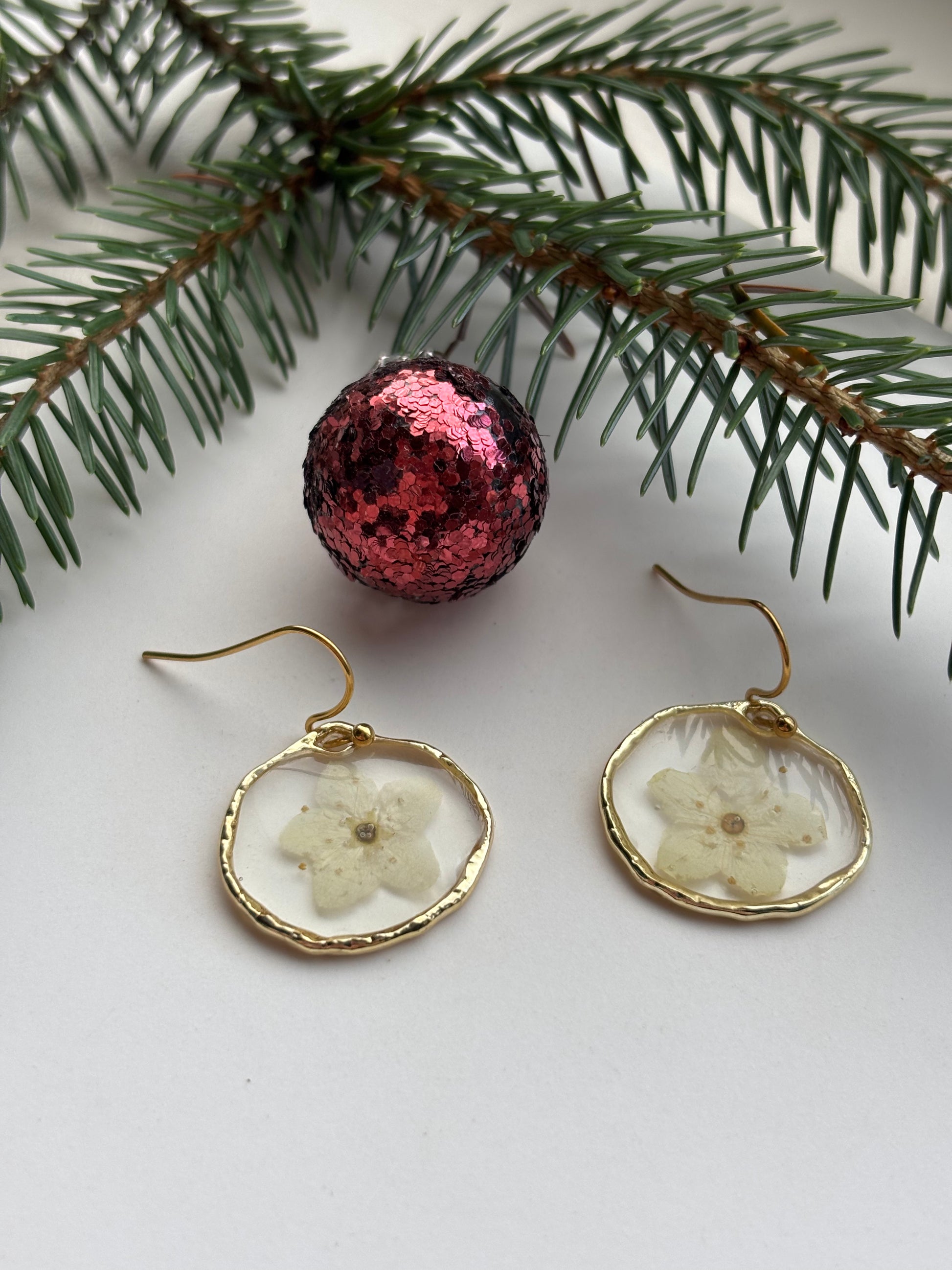 Handgemaakte oorbellen van echte bloemen – sierpeerbloem in epoxyhars (ca. 2,5 cm)