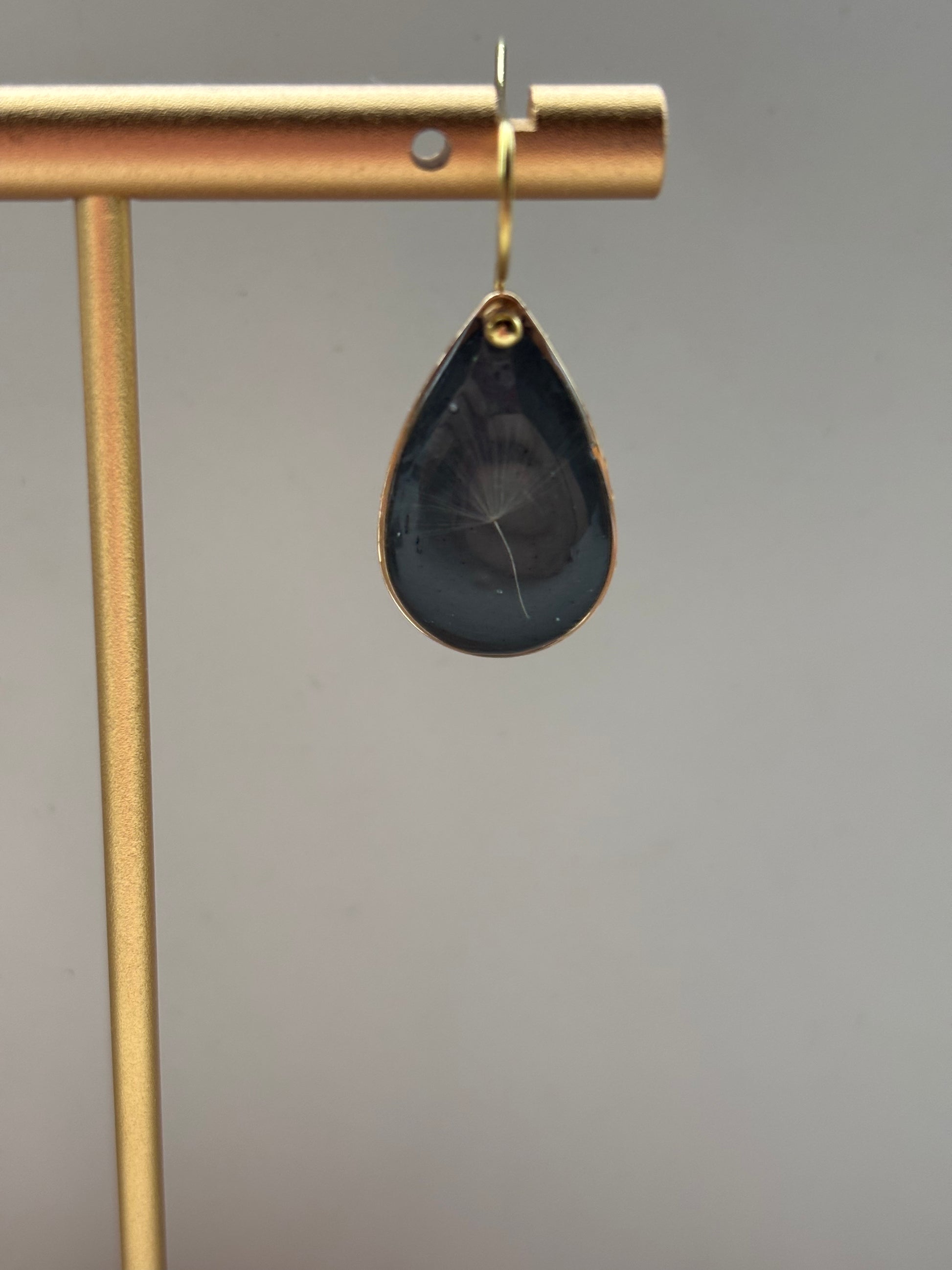 Zwevende Wens - Zwarte Oorbellen met een Paardenbloempluisje