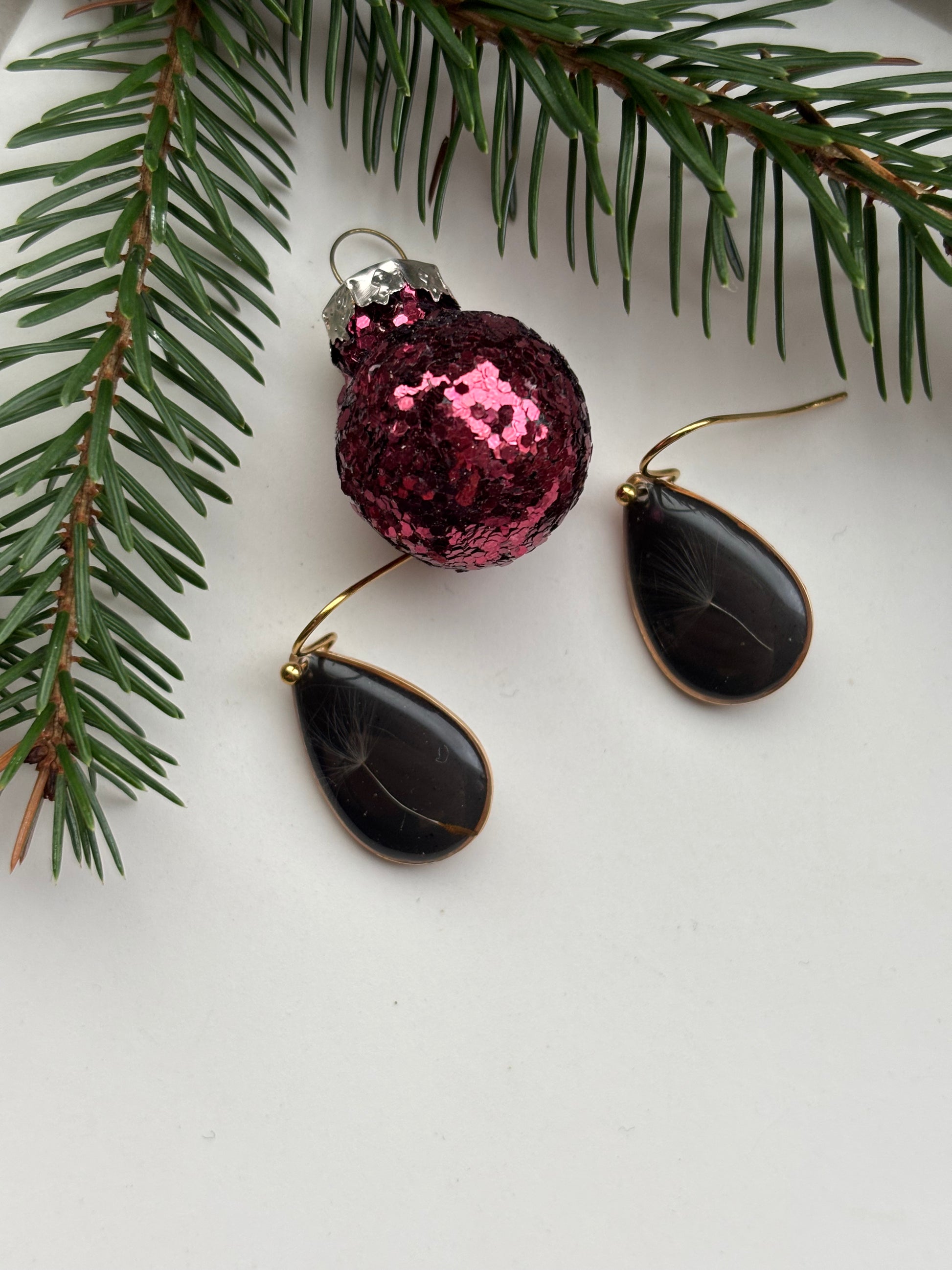 Handgemaakte oorbellen van echte bloemen – paardenbloempluis in epoxyhars