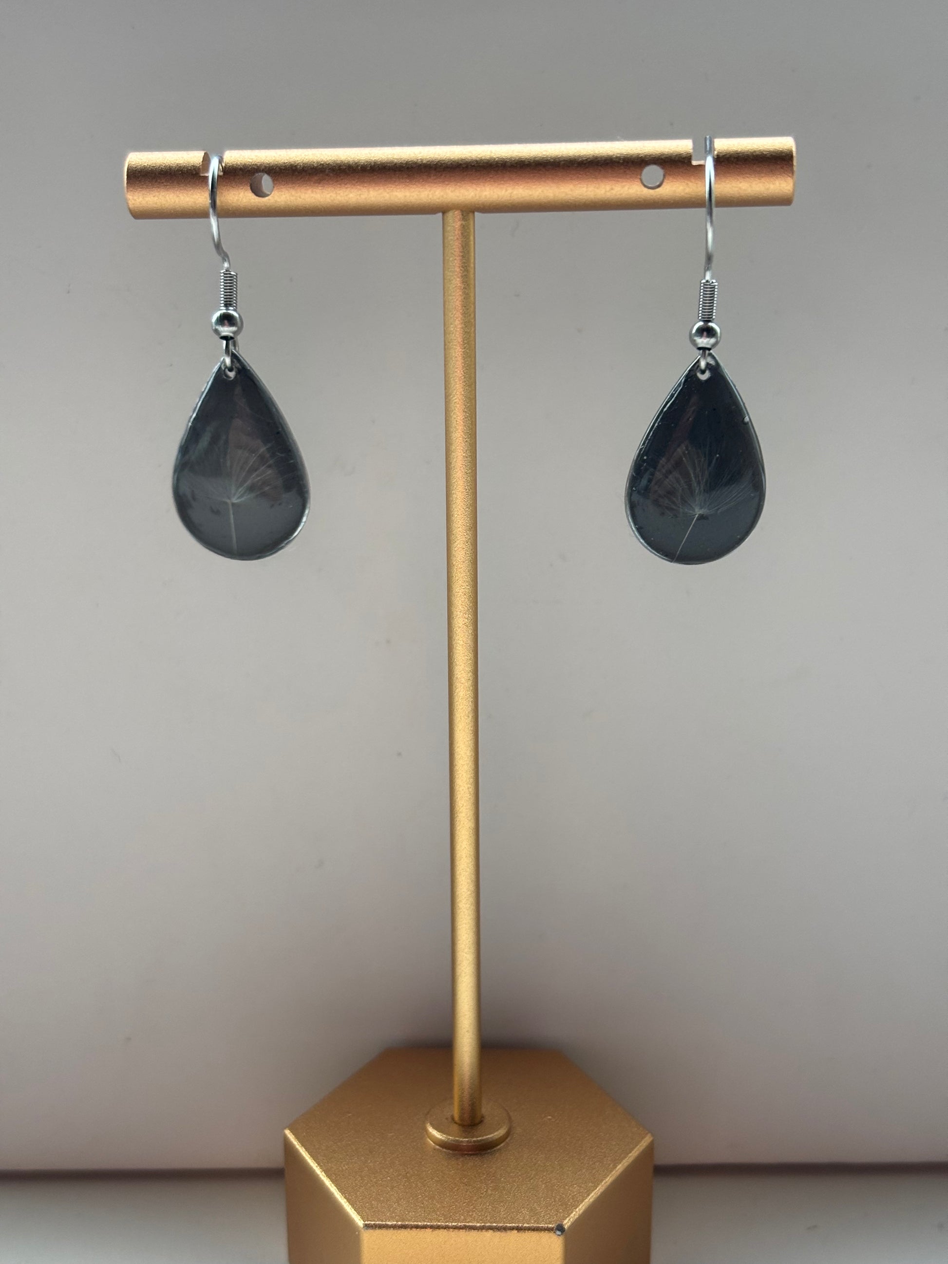 Een sierlijk en dromerig natuurdetail in tijdloos zilver.Deze handgemaakte oorbellen van echte bloemen bevatten een paardenbloempluisje, zorgvuldig ingebed in heldere epoxyhars. Tegen de zwarte achtergrond krijgt het pluisje een bijna magische uitstraling — alsof het elk moment kan wegzweven.