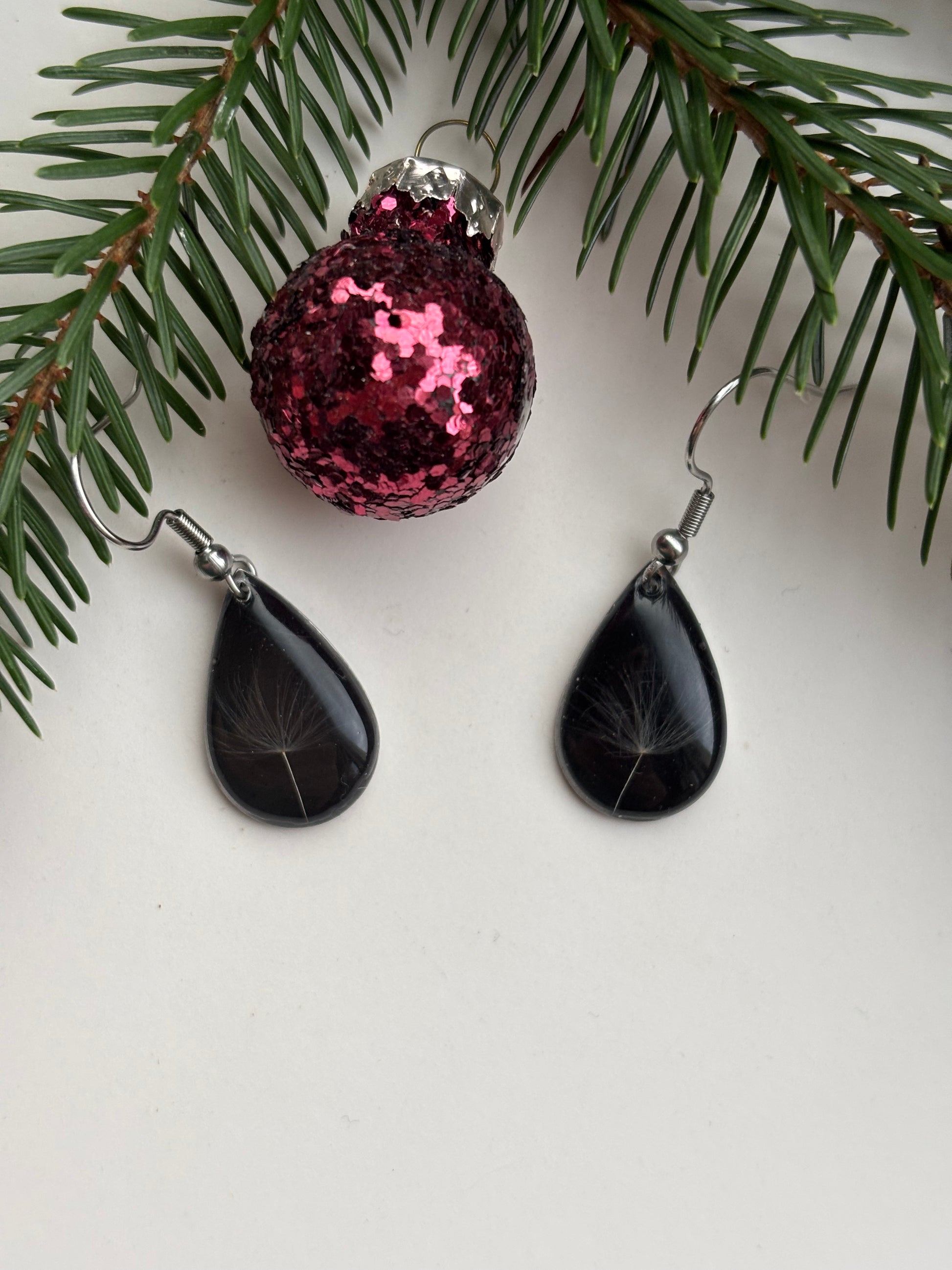 Handgemaakte oorbellen van echte bloemen – paardenbloempluis in epoxyhars